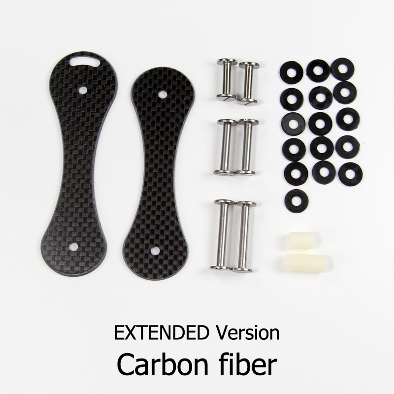 Made of carbon fiber, lenght 95mm(the longest point). Include 3 sets of screw 14mm,20mm,26mm (length of the rod)+16 nylon rings+2 screw sleeves 10mm,16mm(length).